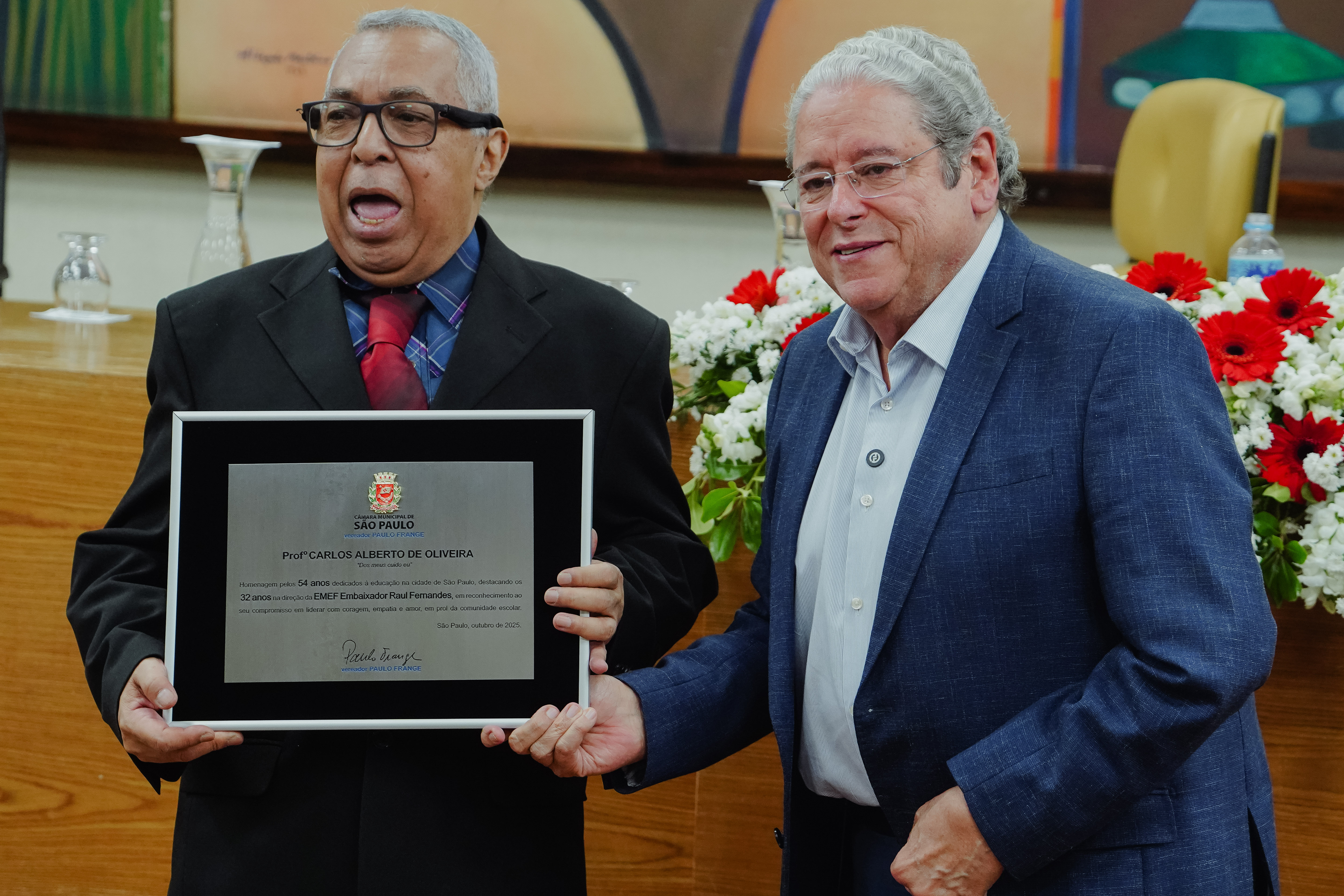 A Câmara Municipal de São Paulo realizou, na noite da última quarta-feira (14), uma emocionante solenidade em homenagem ao professor Carlos Alberto de Oliveira, que encerrou sua trajetória de 54 anos de serviços públicos dedicados à rede municipal de ensino.