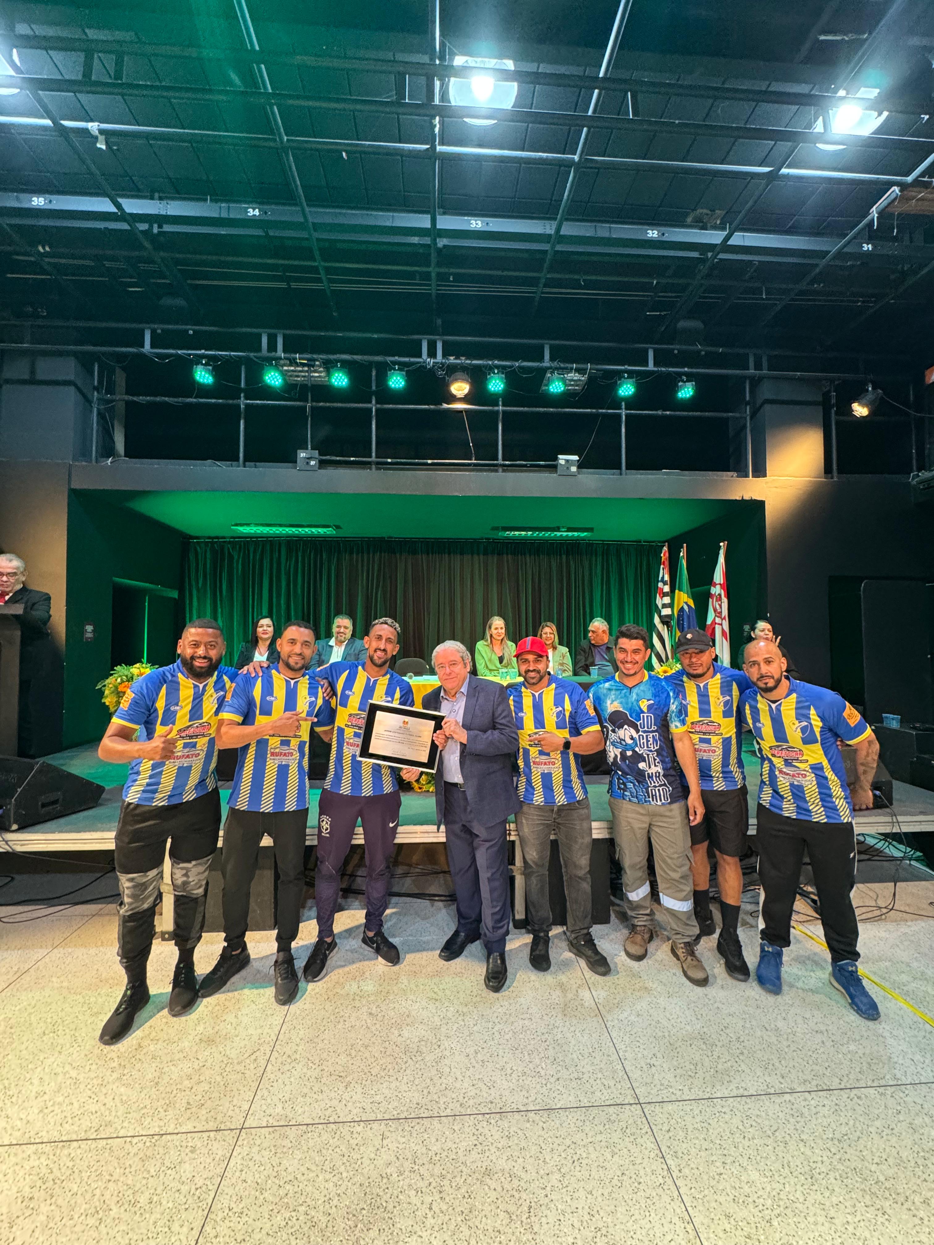 Edélcio dos Anjos Ferreira None e Clóvis Teixeira, representando o homenageado, GTX Futebol Clube: